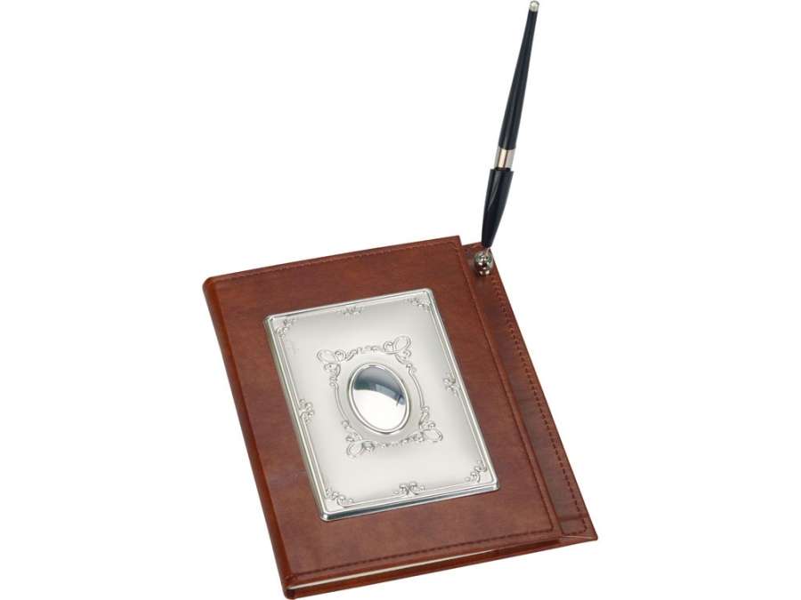 Оригинальный настольный прибор состоит из записной книжки и ручки. Обложка блокнота оснащена держателем для ручки и задекорирована изысканным украшением. Прибор станет настоящей настольной книгой руководителя. Комплектность: записная книжка, ручка шариковая