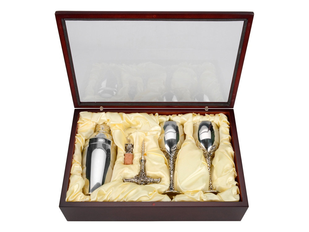 Элегантность, легкость и изысканный стиль выделяют этот набор. Комплектность: шейкер 500мл, штопор, пробка для бутылки, бокал 200мл- 2шт