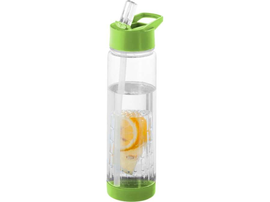 Оригинальная бутылка для воды. Благодаря отделению для фруктов есть возможность создания лимонада на свой вкус. Придется по вкусу любителям натуральных продуктов и здорового образа жизни. Легко разбирается. На пластиковый корпус возможно нанесение тампопечати. Объем – 740 мл. Комплектность: бутылка, ситечко