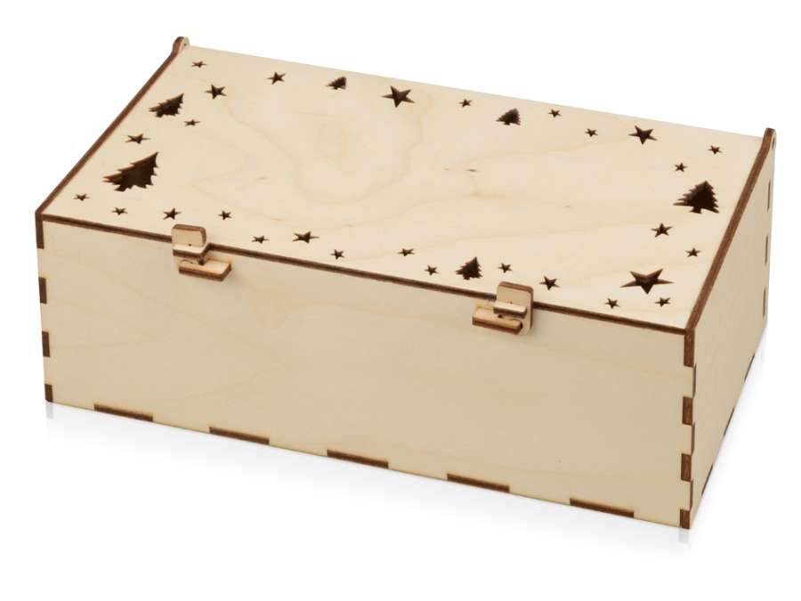 Подарочная коробка в виде небольшой шкатулки подходит для нанесения информации или логотипа на крышке. Орнамент в виде звездочек на крышке украсит ваш подарок, а если внутрь положить несколько электронных свечей, то тени от света свечей оставят причудливые узоры на стенах и потолке. Оригинальная подарочная упаковка Шкатулка - отлично подойдет как для новогодних подарков, так и для презентов по любому другому поводу.