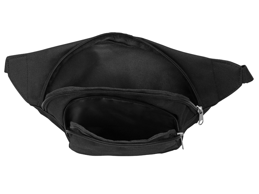 Сумка имеет два кармана на молнии. Пояс тканевый, регулируется по ширине пояса (max 140 см) . Фиксаторы пластиковые.