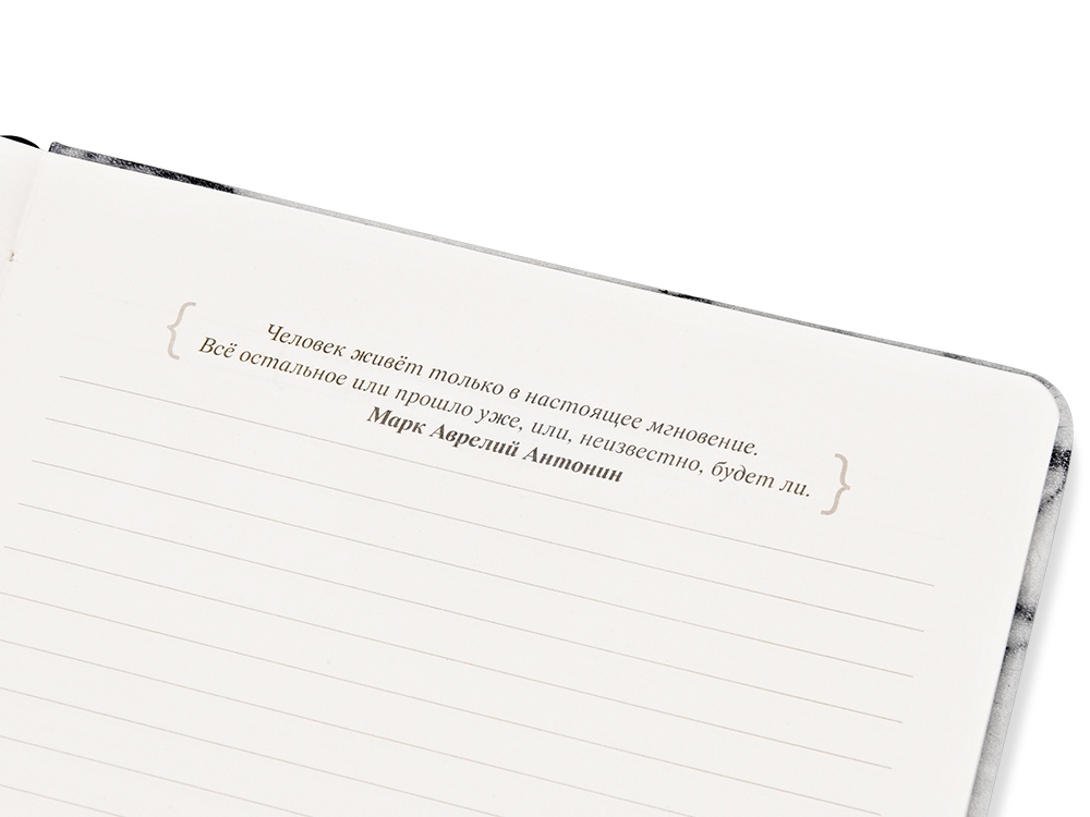 Также дизайнеры придумали оригинальное решение и дополнили блокнот внутренним карманом для хранения записей или визиток. Твёрдая обложка, имитирующая белый мрамор, сделана из полиуретана, что делает ее очень приятной на ощупь. Этот блокнот поможет вам почувствовать себя настоящим современным Сократом. На его страницы так и хочется записать свои гениальные мысли и амбициозные планы. Будьте уверены, что он станет настоящим высокоэффективным инструментом в достижении целей и улучшения вашего качества жизни!