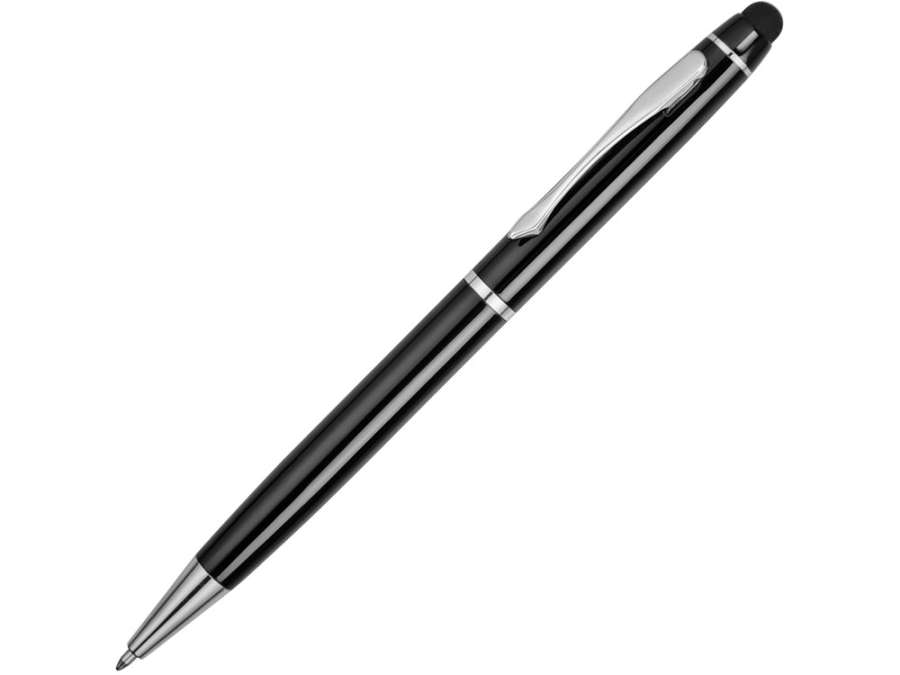 Изюминкой данной модели шариковой ручки является стилус для сенсорного экрана, которым очень удобно пользоваться. Ручка представлена в двух цветах – черном и белом и поставляется в стильном металлическом футляре. И ручку, и футляр можно персонализировать.