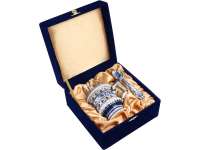 Набор: стакан с подстаканником и ложкой, белый/синий