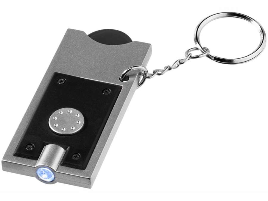 Брелок-держатель для монет Allegro с фонариком, черный/серебристый