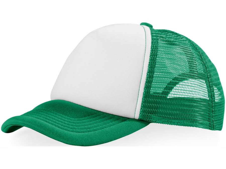 Кепка из 5 панелей Trucker. Оригинальная кепка на окружность головы 58 см с передней поролоновой частью, пластиковой сеткой сзади и пластиковой застежкой. Эта кепка полностью соответствует требованиям к соединениям AZO, формальдегиду и ПХФ. Полиэстер и поролон.
