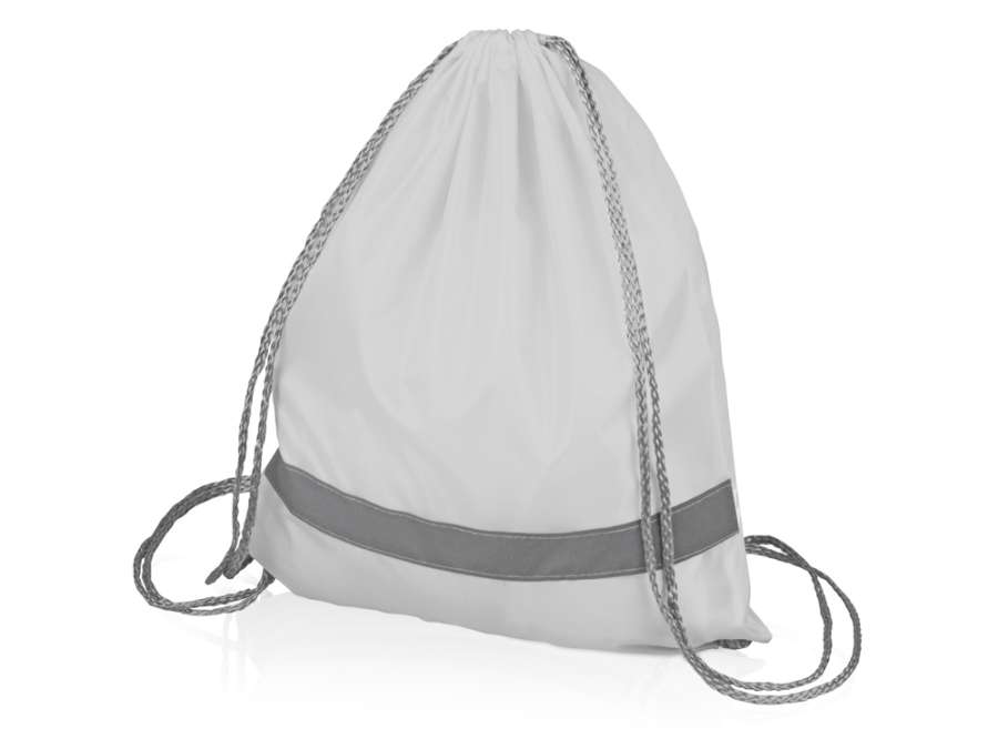 Рюкзак-мешок со светоотражающей полосой и серыми шнурками.