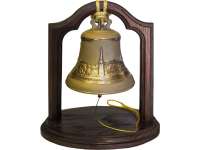 Колокол сувенирный весом 1кг Царский на дубовой подставке. Поверхность колокола матированная с вызолочением.