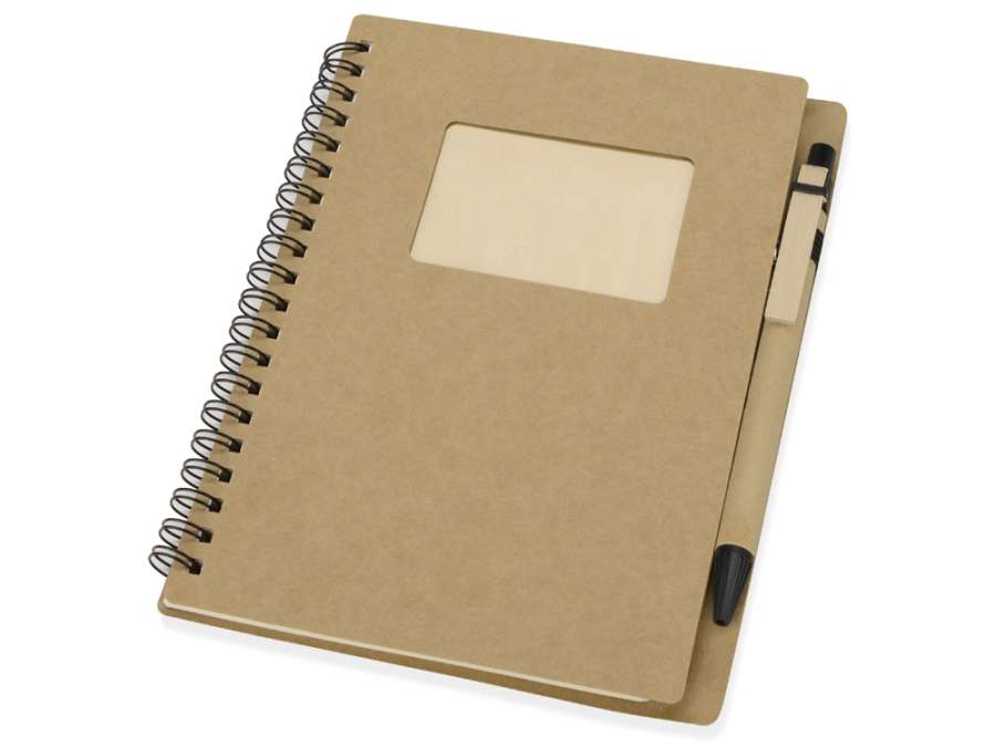 Блокнот Дейзи сделан из бумаги и картона и переплетен на пружине. В обложке блокнота предусмотрено окошко 8, 3 х 4, 7 см, в которое можно поместить визитную карточку или полиграфическую вставку размером 9 х 5, 8 см.