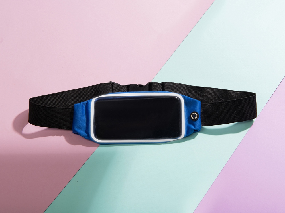 Сумка на пояс с отделением для смартфона размером до 16 х 8 см и выходом для наушников.