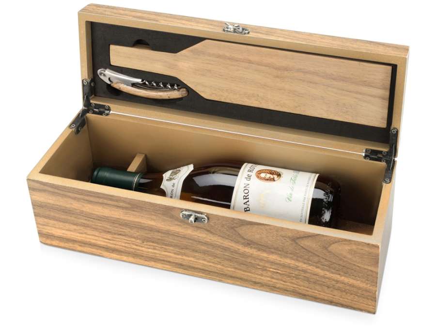 Набор аксессуаров для вина и сыра со штопором-открывалкой и разделочной доской Комплектность: короб для бутылки вина, штопор-открывалка, разделочная доска