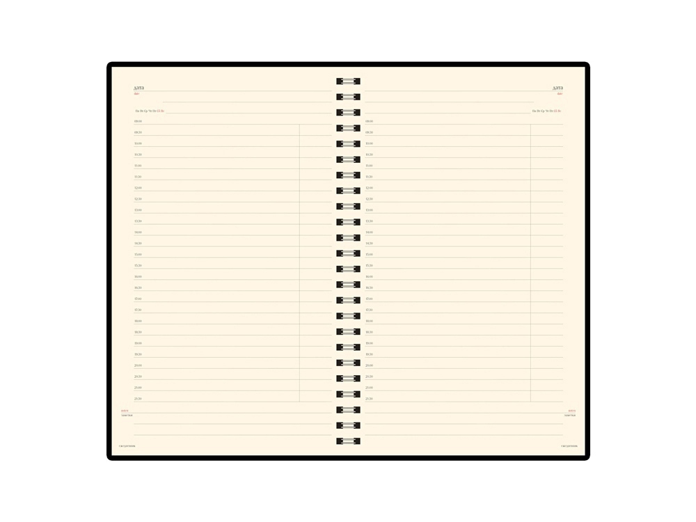 Ежедневник Milano от бренда Bruno Visconti - это сочетание элегантности и практичности. Закругленная обложка из классического переплетного материала - хорошая альтернатива натуральной коже. Форма обложки подчеркнута аккуратной строчкой по краю. Внутренний блок формата А5 на современном креплении – полускрытом гребне – содержит 272 страниц. Для них подобрана первосортная бежевая бумага повышенной плотности (70 г/кв м). Помимо рабочих страниц в структуру блока включены телефонная книга и справочный раздел. На страницах для планирования есть удобная почасовая разбивка.