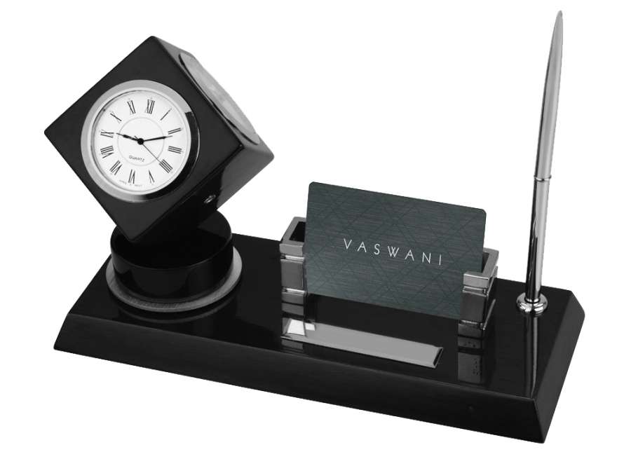 Настольный прибор с погодной станцией Магдебург - это настоящая метеостанция на вашем столе. В комплект настольного прибора входят: часы, термометр, гигрометр, держатель для визиток, ручка шариковая.