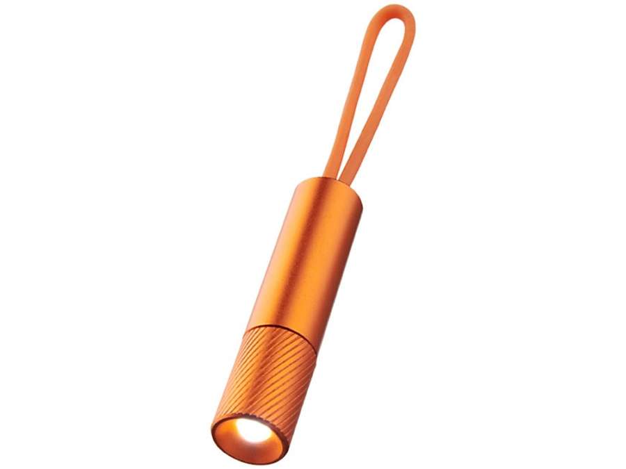 Брелок-фонарик Merga - это легкий и компактный промо-подарок для коллег и клиентов. Светодиодный фонарик включается с помощью поворотного механизма и оснащен силиконовой петелькой, светящейся в темноте. Корпус фонарика изготовлен из алюминия. В комплекте идут батарейки.