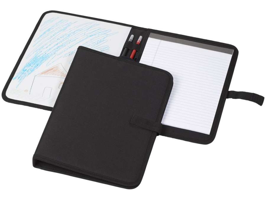 Папка Veela A4. Папка A4 с текстильной застежкой. Включает блокнот с 30 страницами линованной бумаги и доску. В комплект входят маркеры и салфетки. Полиэстер 600D. Комплектность: блокнот, доска, маркеры, салфетки