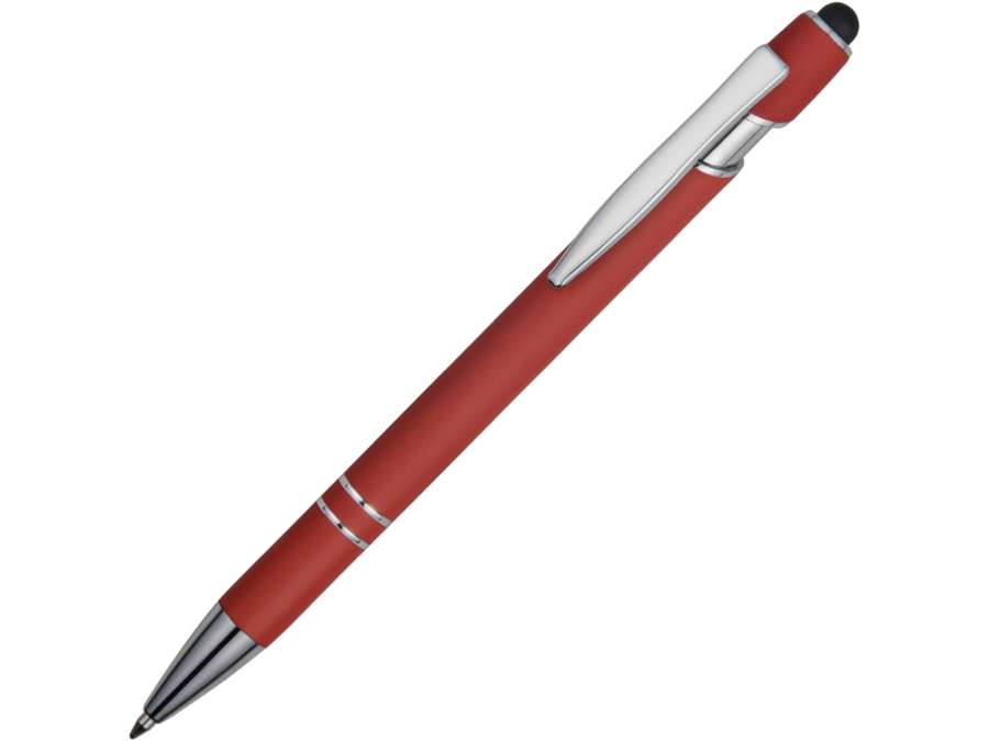 Ручка металлическая soft-touch шариковая со стилусом Sway, красный/серебристый