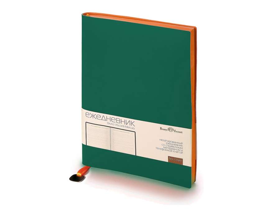 Недатированный ежедневник Mercury от бренда Bruno Visconti - это качественный корпоративный подарок по выгодной цене, произведенный специально под персонализацию. Представлен в современном формате А5. Обложка ежедневника выполнена из современного переплетного материала с двойной закладкой с шильдом. Цветной край блока, а также отделка листов цветными деталями - это переплетение технологических новинок и оригинальных дизайнерских решений.