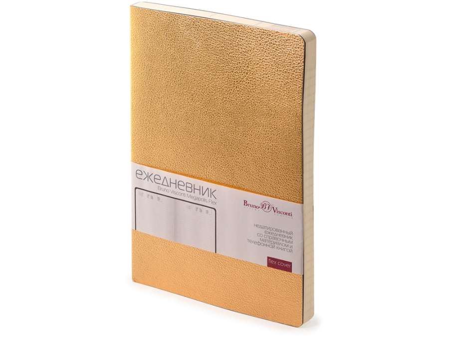 Недатированный ежедневник Megapolis Flex от бренда Bruno Visconti - это качественный корпоративный подарок по выгодной цене, произведенный специально под персонализацию. Представлен в универсальном формате А5 и состоит из 272 страниц. Элегантная закругленная flex обложка из гладкого кожзама имеет гибкую конструкцию и приятна на ощупь. А интегральный переплет позволяет сэкономить место в деловой сумке или портфеле – ежедневник можно просто свернуть в трубку или согнуть пополам.
