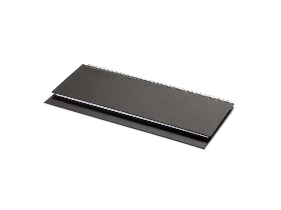 Недатированный планинг на гребне, цвет черный, твердый переплет, 128 страниц. Плотность бумаги 70 грамм высшего сорта. Печать в 2 краски.