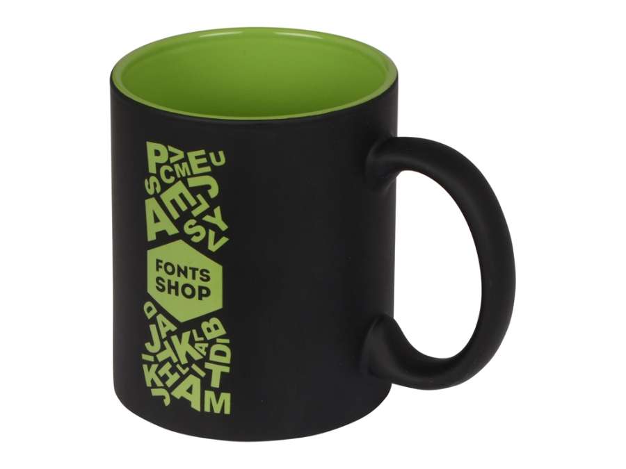 Кружка с покрытием для гравировки Subcolor BLK, черный/зеленое яблоко