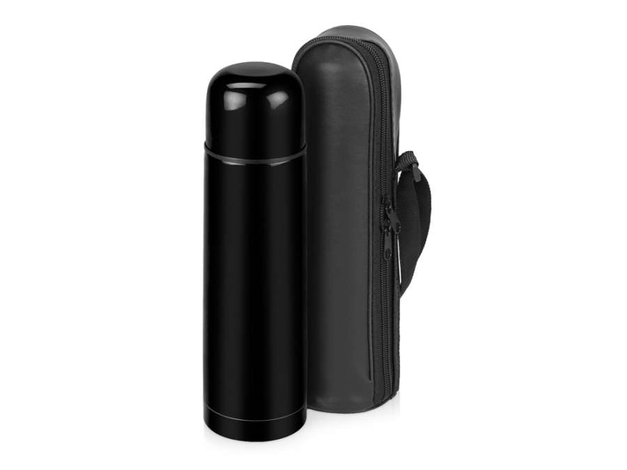 Термос - один из универсальных видов подарков, который уж точно не будет пылиться на полке. Термос на 500 мл имеет компактные размеры, его удобно носить в сумке или брать с собой в автомобиль и он сохранит ваши напитки горячими 24 часа. На глянцевой металлической поверхности прекрасно будет смотреться лазерная гравировка. Термос идет в комплекте с дорожным чехлом. Комплектность: дорожный чехол