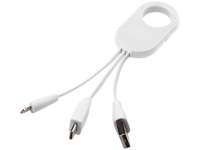 Кабель для зарядки 3-в-1. Кабель для зарядки Troop 3-в-1 с коннектором USB Type C и двойным совместимым коннектором 2-в-1 для устройств Apple® iOS и Android. Кабель оснащен карабином для удобного крепления к сумке. АБС-пластик.