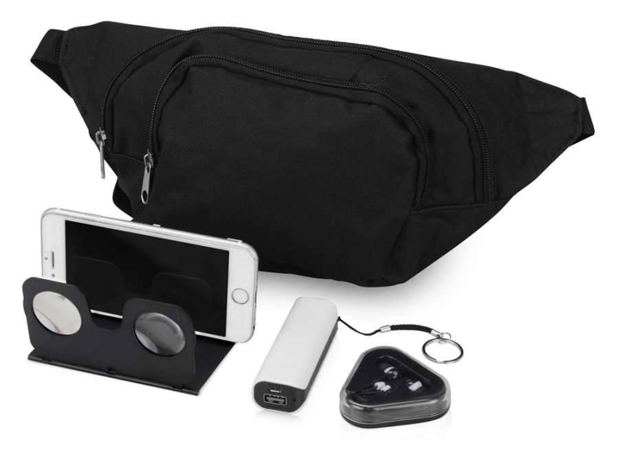 Хотите посмотреть 3D фильм в дороге? Набор Virtuality поможет с этим. Благодаря 3D очкам вы можете смотреть фильм прямо с экрана мобильного устройства, а благодаря наушникам посторонние звуки не будут вас отвлекать. С зарядным устройством Basis не нужно переживать о том, что ваш смартфон разрядится в дороге. Все предметы сложены в удобную поясную сумку. Внимание! В набор не входят провода для зарядного устройства. Комплектность: сумка-пояс, портативное зарядное устройство, очки виртуальной реальности, наушники