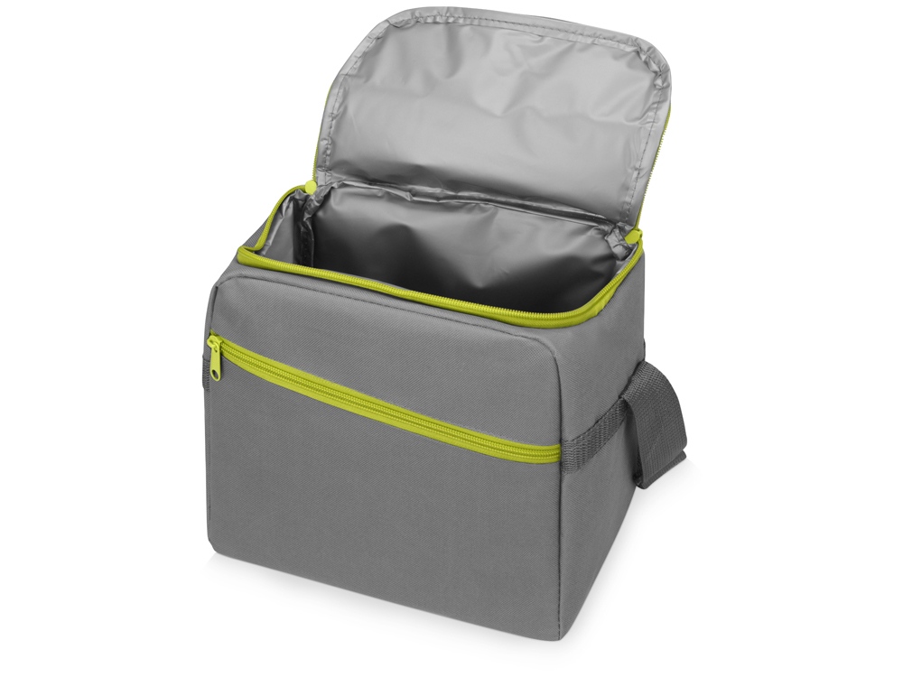 Изотермическая сумка-холодильник Classic c контрастной молнией, серый/зел яблоко
