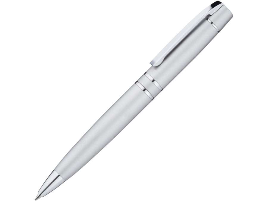 Металлическая шариковая ручка с поворотным механизмом и пружинным клипом. Фурнитура с глянцевой хромированной отделкой.