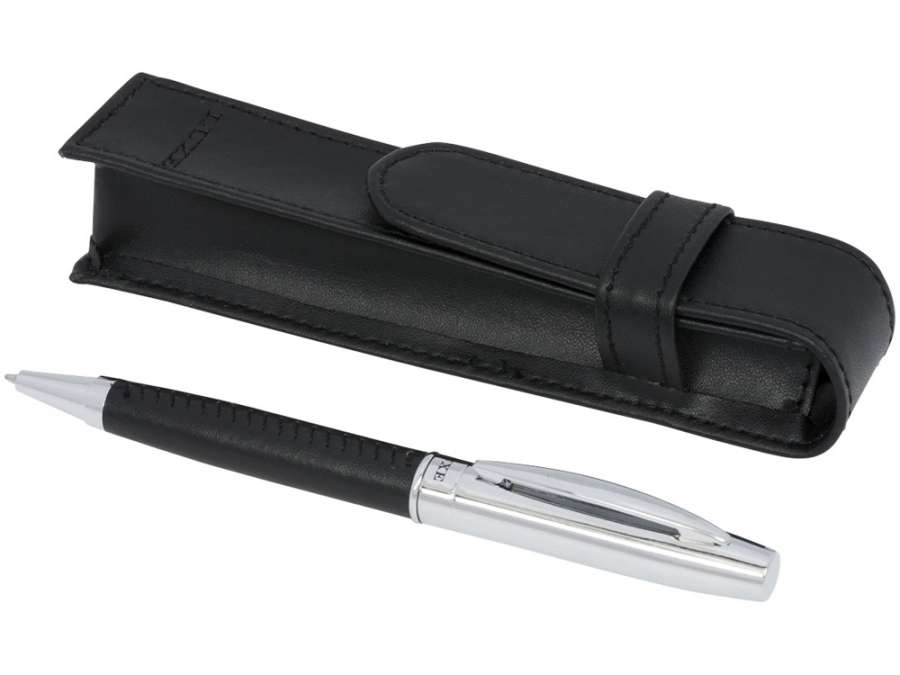 Подарочный набор Scherzo. Эксклюзивная шариковая ручка с обтянутым кожаным материалом корпусом и чехлом из искусственной кожи, упакованная в подарочную коробку LUXE. Металл и искусственная кожа.