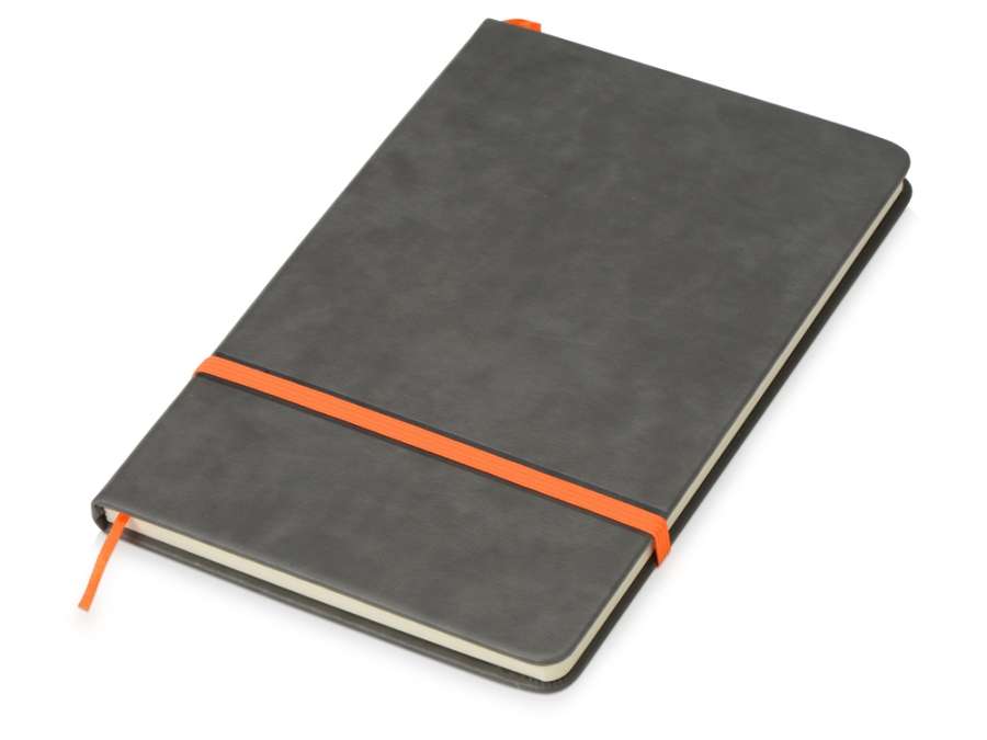 Блокнот Color линованный А5 в твердой обложке с резинкой, серый/оранжевый