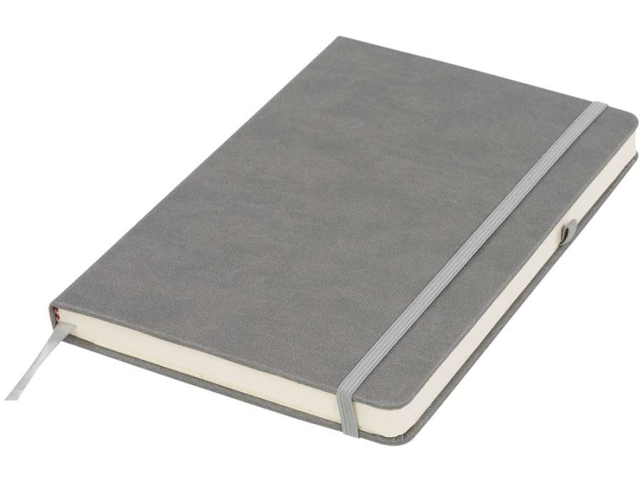 Блокнот Rivista среднего размера. Блокнот Rivista отличается стильным современным дизайном с высококачественной обложкой, идеально подходящей для нанесения логотипа и информации вашей компании. Предлагаются современные цвета. Также предусмотрена эластичная застежка, держатель для ручки, лента-закладка и внутренний кармашек на задней стороне обложки. Содержит 128 листов линованной бумаги (70 г/м²) кремового цвета. ПУ.