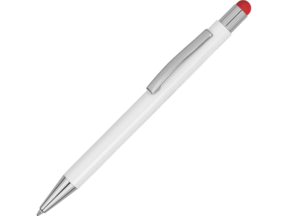 Ручка металлическая шариковая Flowery со стилусом и цветным зеркальным слоем, белый/красный