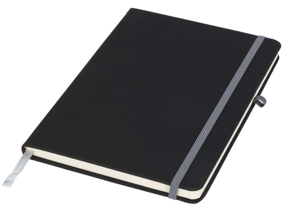 Блокнот Noir среднего размера. Блокнот Noir с мягкой на ощупь черной ПУ обложкой. В каждом блокноте есть цветная застежка, держатель для ручки и лента-закладка. Блокнот содержит 96 листов линованной бумаги (70 г/м²) кремового цвета. ПУ.
