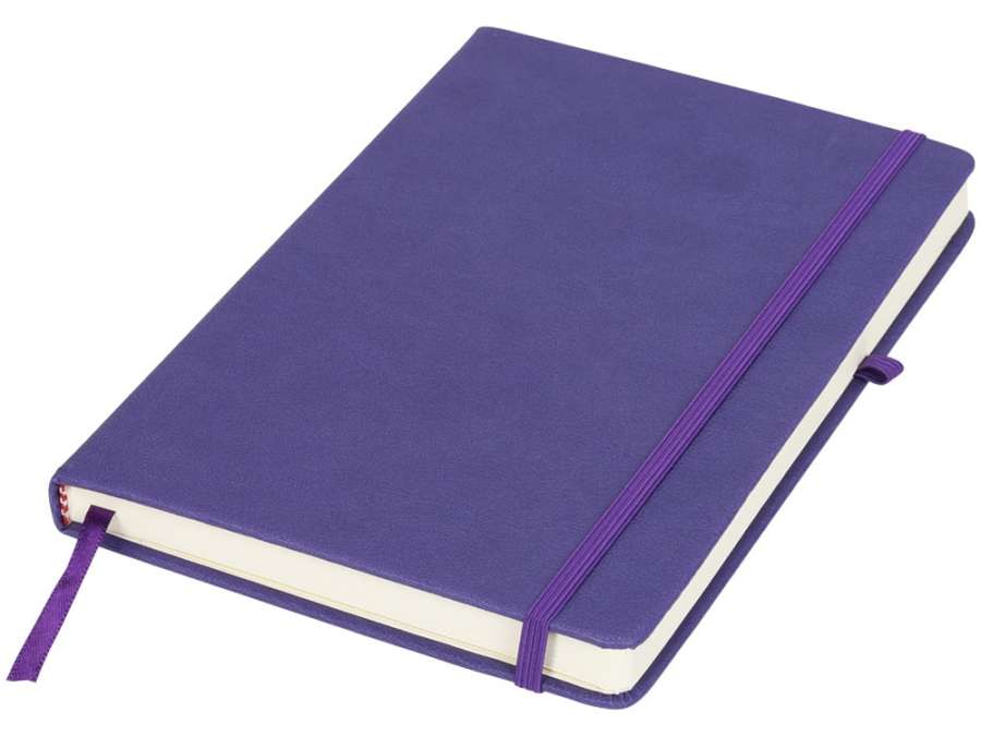 Блокнот Rivista среднего размера. Блокнот Rivista отличается стильным современным дизайном с высококачественной обложкой, идеально подходящей для нанесения логотипа и информации вашей компании. Предлагаются современные цвета. Также предусмотрена эластичная застежка, держатель для ручки, лента-закладка и внутренний кармашек на задней стороне обложки. Содержит 128 листов линованной бумаги (70 г/м²) кремового цвета. ПУ.
