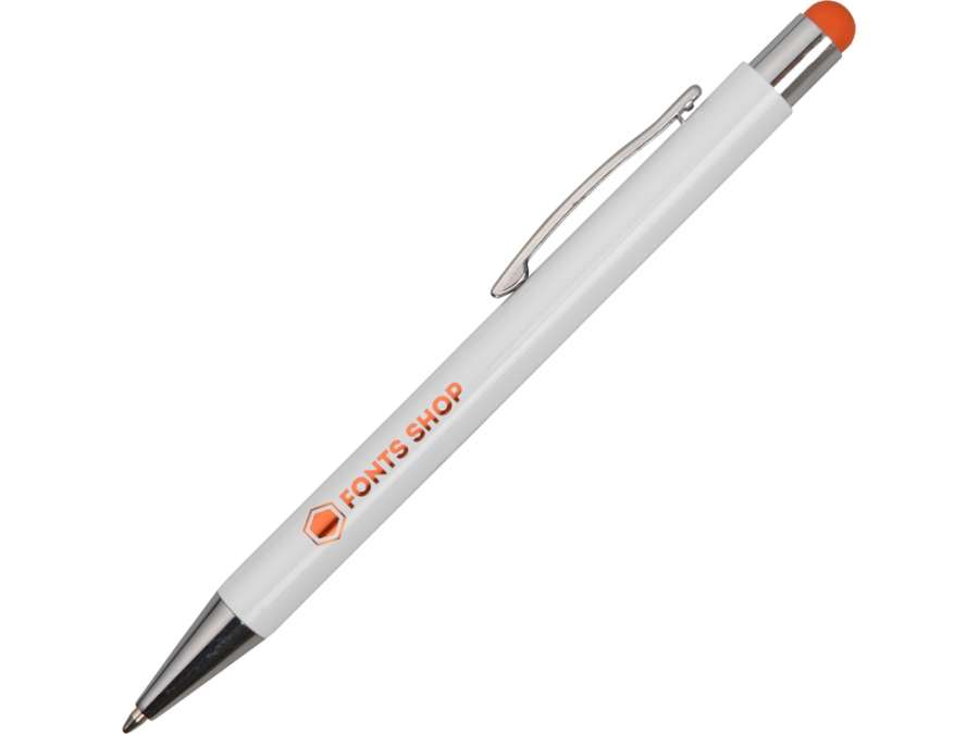 Ручка металлическая шариковая Flowery со стилусом и цветным зеркальным слоем, белый/оранжевый