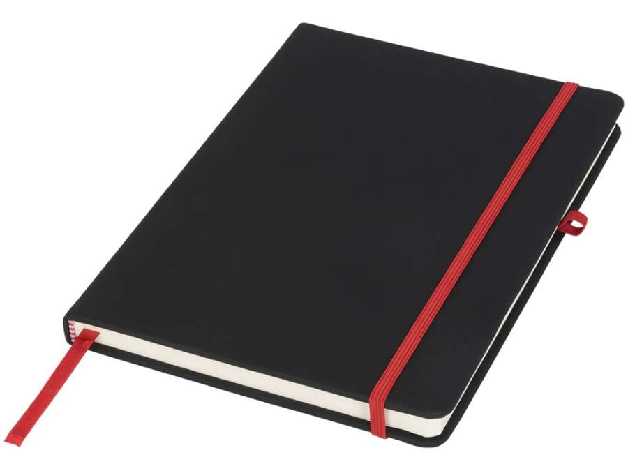 Блокнот Noir среднего размера. Блокнот Noir с мягкой на ощупь черной ПУ обложкой. В каждом блокноте есть цветная застежка, держатель для ручки и лента-закладка. Блокнот содержит 96 листов линованной бумаги (70 г/м²) кремового цвета. ПУ.