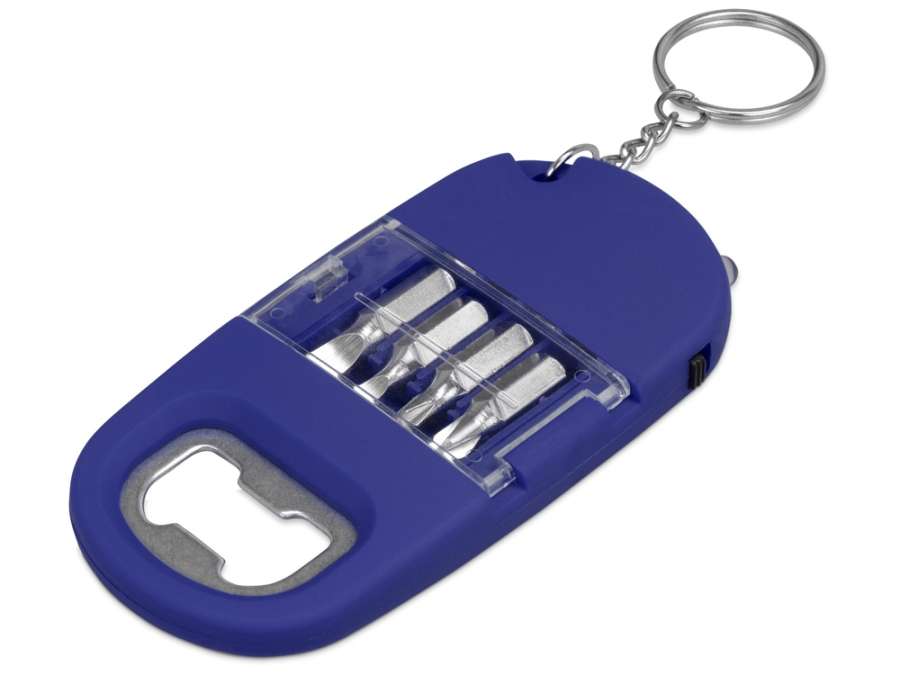 Брелок-открывалка с отвертками и фонариком Uni, софт-тач, синий