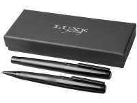 Подарочный набор из двух ручек Gloss. Подарочный набор из шариковой ручки и ручки-роллера с черним колпачком и глянцевым корпусом в подарочной коробке LUXE. Шариковая ручка: 14 см х 1, 45 см, вес: 40 г, длина непрерывной линии: 800 м. Ручка-роллер: 13, 8 см х 1, 45 см, вес: 54 г, длина непрерывной линии: 400 м. Металл. Комплектность: шариковая ручка, ручка - роллер