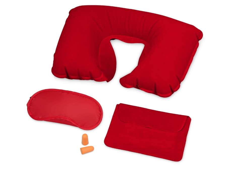 Замечательный дорожный набор включает в себя надувную подушку, маску на глаза и беруши, все это упаковано в специальный чехол. Приятная на ощупь поверхность набора обеспечит комфортный сон в любой обстановке. Комплектность: маска на глаза 18, 5 х 8 см, подушка под голову 41 х 26, 5 см, беруши, дорожный чехол 12 х 17, 5 см