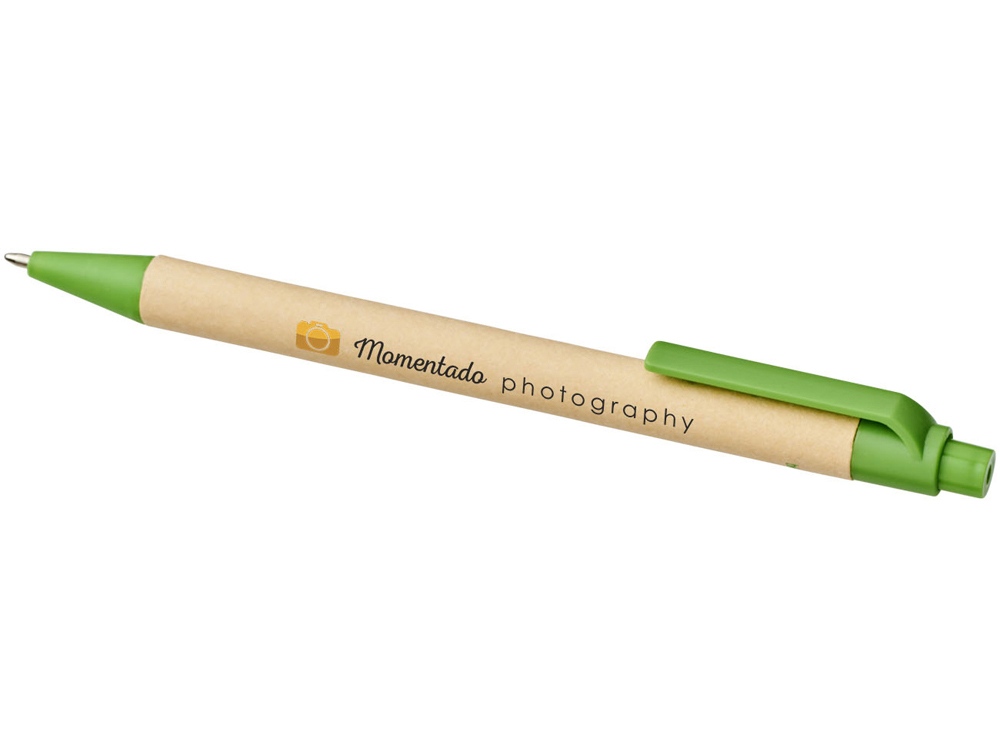 Шариковая ручка Berk из переработанного картона и кукурузного пластика, натуральный/зеленый