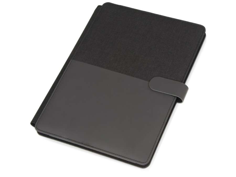 Стильная папка для документов формата А4 с комбинированной обложкой из текстиля и искусственной кожи. Удобный внутренний органайзер имеет карман на застёжке для планшета, блокнот для записей с линованной бумагой. Комплектность: папка, блокнот А4