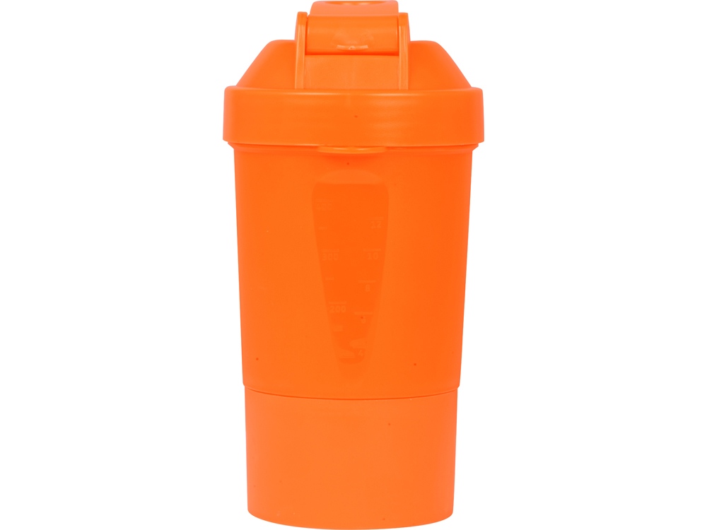 Шейкер для спортивного питания - это один из необходимых аксессуаров для спортсменов и людей, ведущих активный образ жизни. В нем можно приготовить протеиновый коктейль или фруктовый напиток. Шейкер классической формы, он удобно лежит в руке, к донышку прикручивается емкость для смешивания (таблетница), в которой можно хранить спортивные добавки: протеиновый порошок, витамины и другие концентраты. Внутри колбы имеется пластиковая сетка, чтобы процеживать спортивный напиток, а также металлический размешиватель, который растворяет порошок в напитке без комочков. Объем - 400мл. Шейкер изготовлен из пищевого пластика, он герметичен и легко моется.