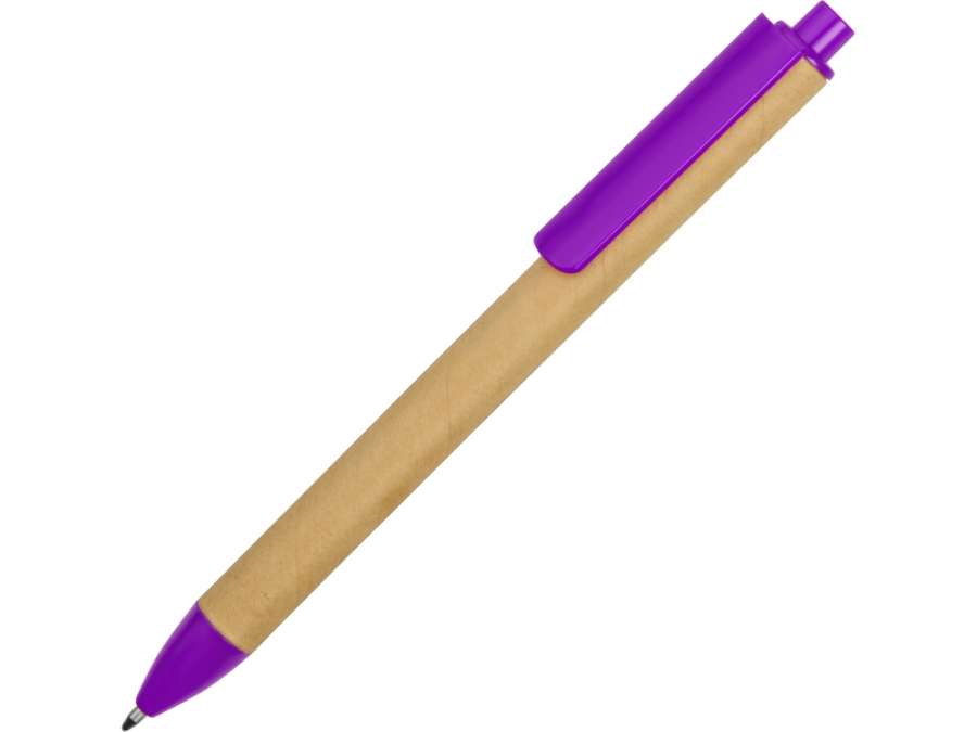 Ручка картонная пластиковая шариковая Эко 2. 0, бежевый/фиолетовый