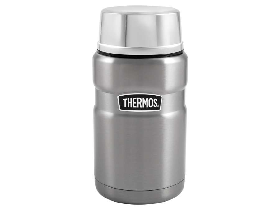Термос для еды из линейки KING стального цвета - лучший вариант для автопутешествий, походов на пикник, рыбалки или охоты. Широкое горло, полноразмерная крышка-чашка и металлическая складная ложка, позволяют использовать термос для первых и вторых блюд. Небьющиеся стенки термоса из нержавеющей пружинной стали способны противостоять внешним повреждениям и вмятинам. Термос очень легкий и компактный, чем удобен в транспортировке и хранении.