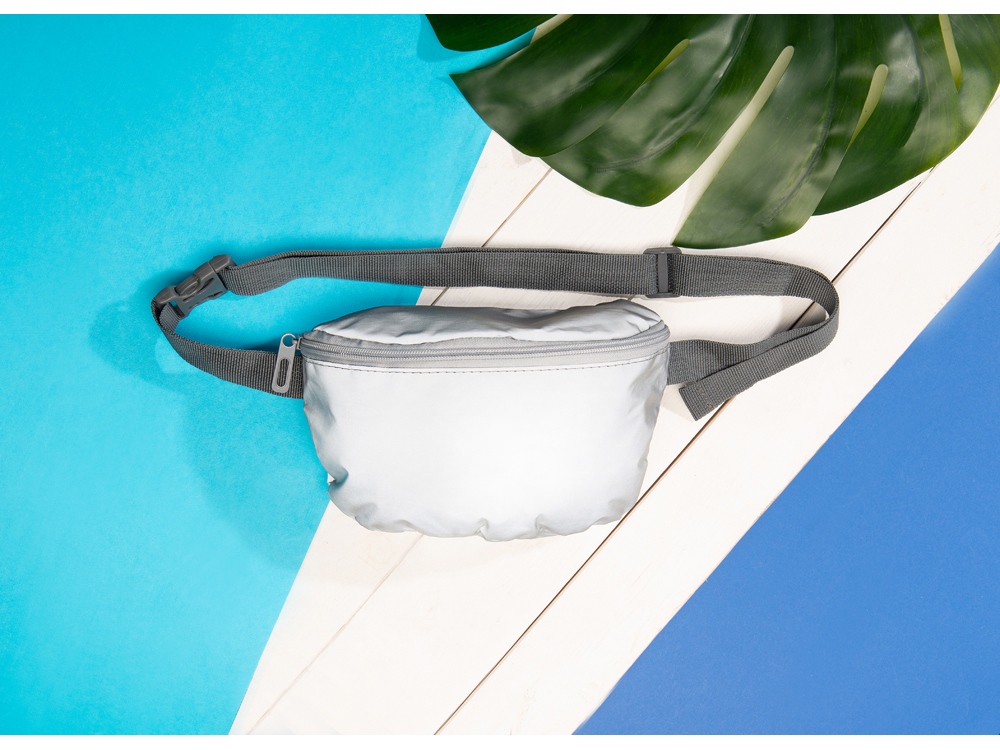 Удобная и компактная сумка на пояс из светоотражающей ткани обеспечивает дополнительную безопасность в темное время. Внутренний карман на молнии станет надежной защитой для ваших ценностей. Регулируемый ремень позволит носить сумку и на талии, и на груди. Прочная подкладка продлит срок службы сумки.