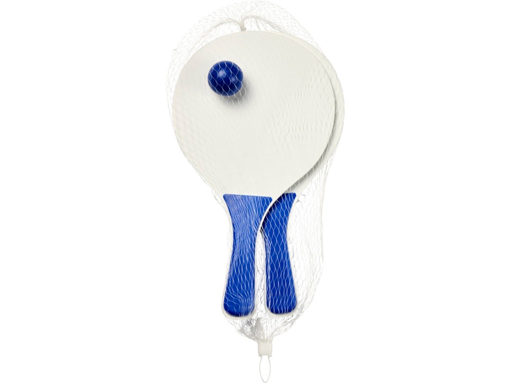 Набор для пляжных игр Bounce. С этим набором пляжных игр, предлагаемым в широкой цветовой гамме, всегда весело. Этот прочный набор пляжных игр изготовлен из дерева МДФ с цветной ручкой из полипропилена. Упаковано вместе с мягким шариком одного цвета в сетчатую упаковку, что позволяет провести веселый день на пляже. МДФ.