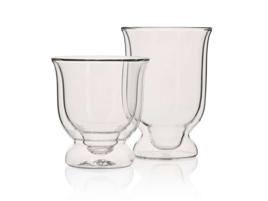 Идеально подходит для горячих и холодных напитков, препятствуя их быстрому охлаждению или нагреву. При заполнении горячими напитками внешняя поверхность остается холодной. Изготовлено из огнеупорного боросиликатного стекла, которое легче и прочнее традиционного стекла для посуды. Удобно для использования в повседневной жизни, посудомоечных машинах и микроволновых печах. Комплектность: 2 стакана