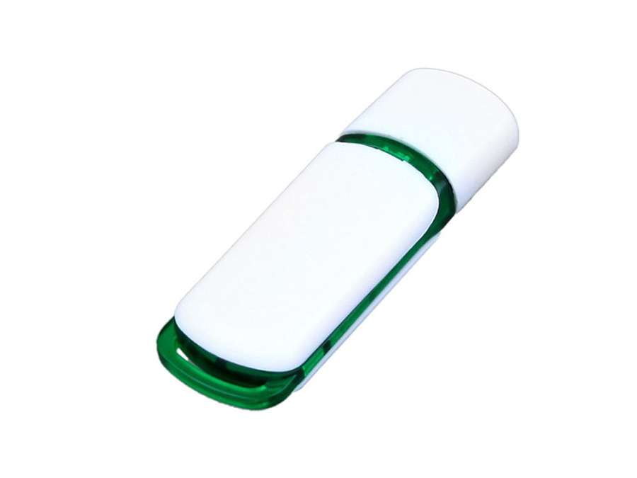 Флешка промо прямоугольной классической формы с цветными вставками, 8 Гб, белый/зеленый