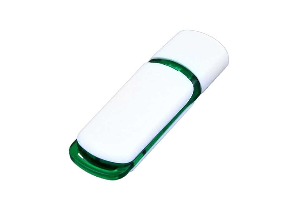 Флешка 3. 0 промо прямоугольной классической формы с цветными вставками, 32 Гб, белый/зеленый
